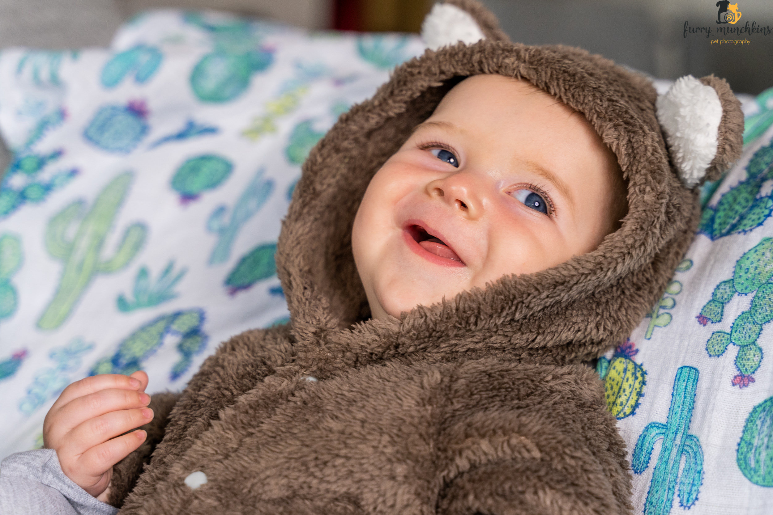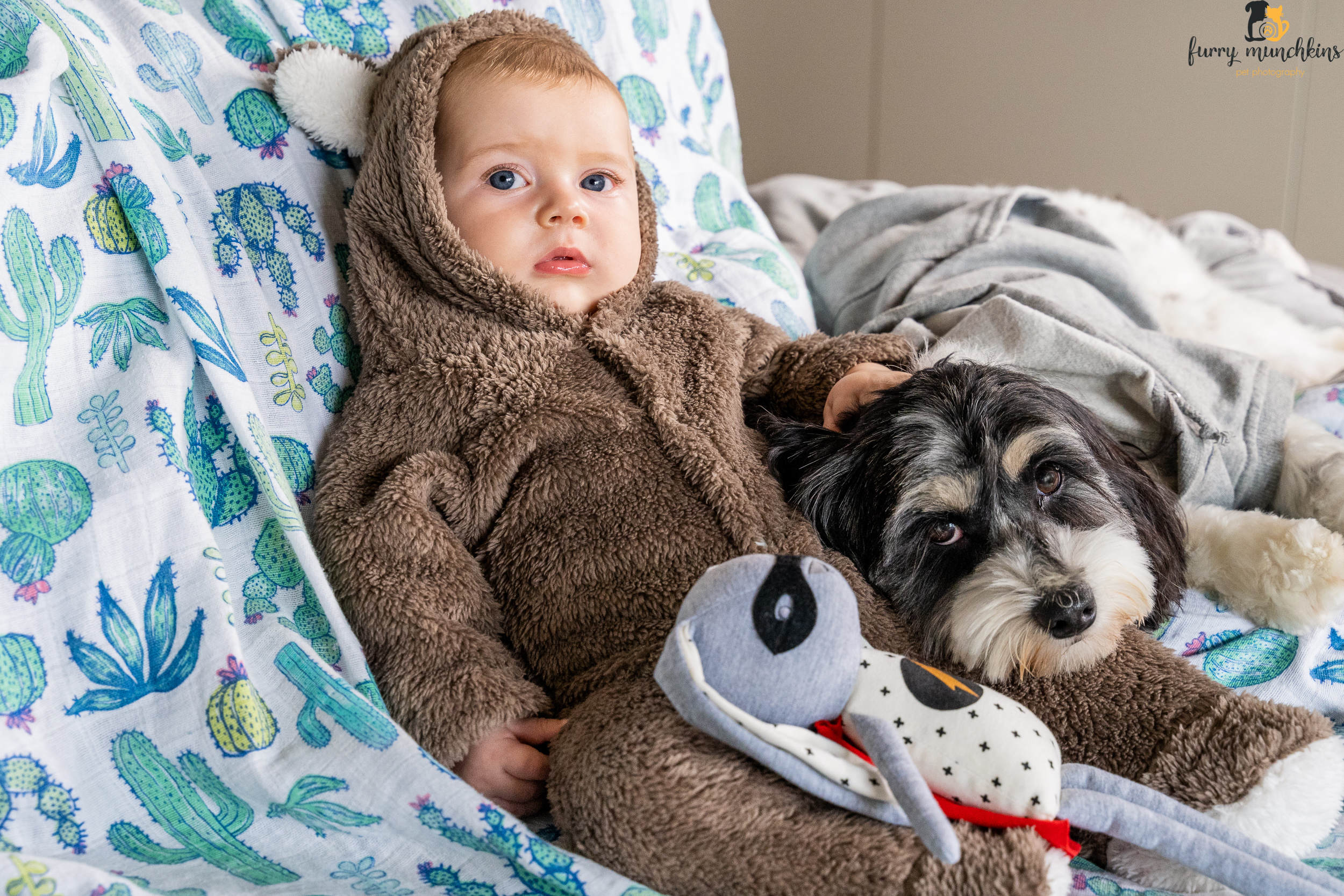 Ash and Penny are brother and sister who love each other dearly. Though they are only younglings, they have already begun to develop a special bond with each other. If we needed to title this photo shoot, it would have been "Cuteness overload!" Dressed in his very own onesie to pass off as a furry munchkin, Ash enjoyed the tender moments with Mum in front of the camera.